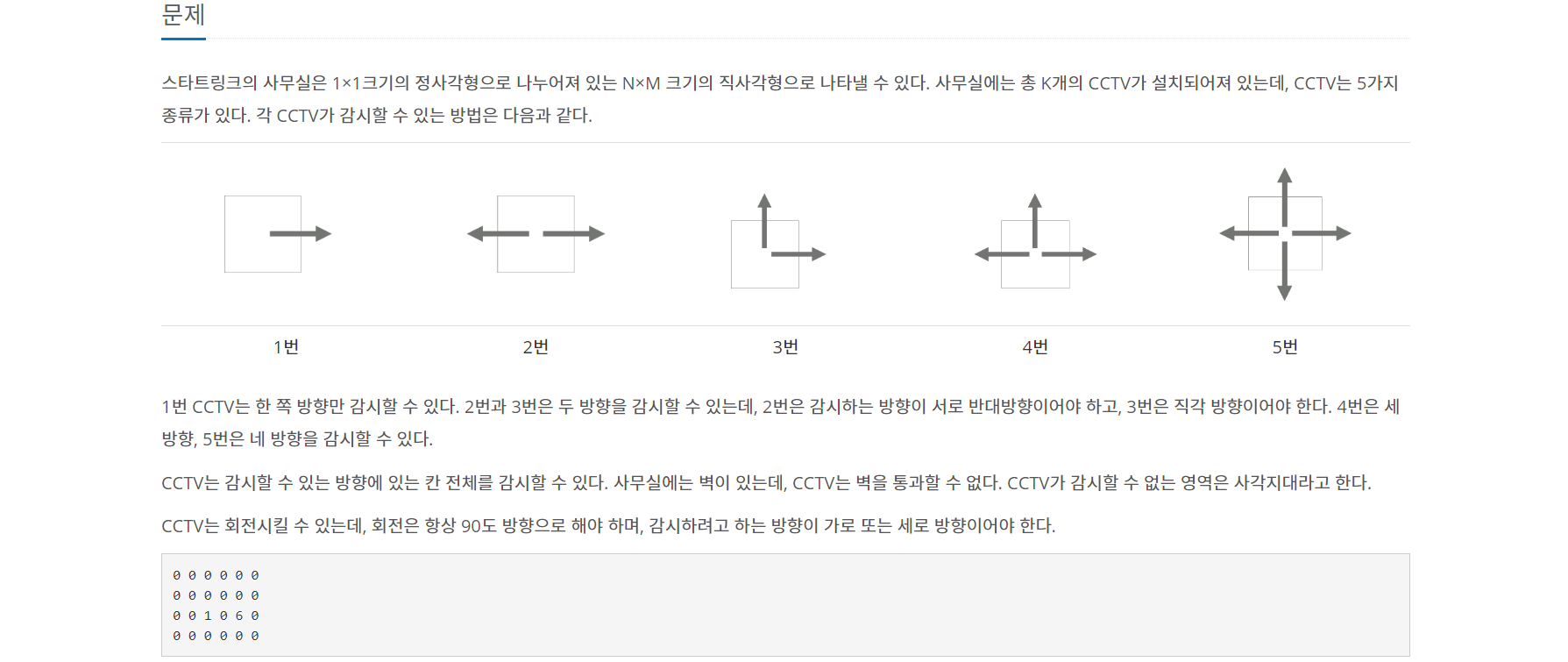 먼저 문제를 이해해보면 1,3,4 번 Cctv는 총 4 가지 방법으로 감시할 수 있고